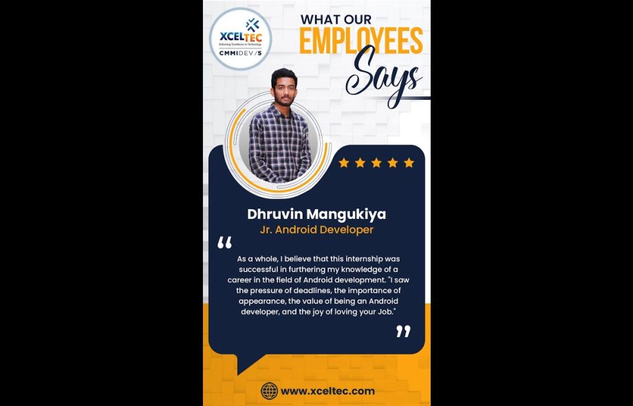 Fantastic review by one of our hard-working interns, @Dhruvin. who is a student at Silver Oak College.. We are encouraging their journey from an intern to a full-time employees. He is a brilliant intern, he has been working on our live project. We are delighted to have you on board and wish you many successful years at XcelTec.