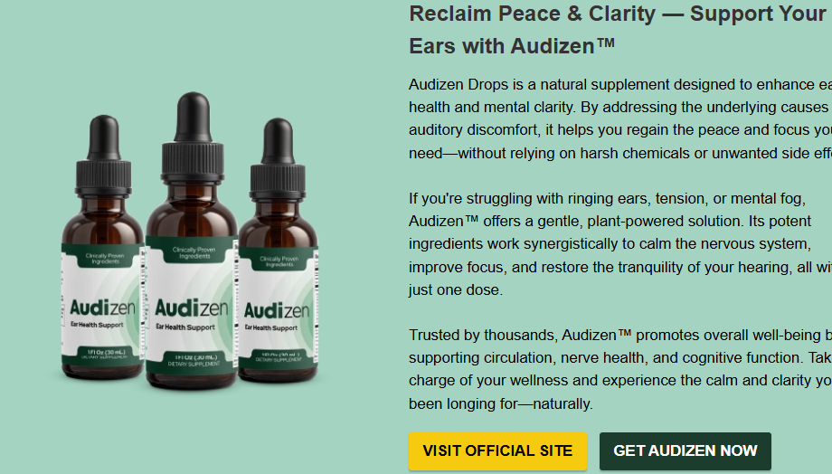 Audizen Hearing Drops are a natural supplement designed to support hearing health and relieve common ear-related issues such as tinnitus (ringing in the ears), mild hearing loss, and ear discomfort. Made with a blend of herbal extracts and essential nutrients, Audizen works by improving blood circulation to the auditory nerves, reducing inflammation, and flushing out toxins that may damage ear function.